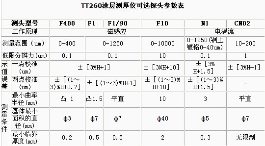 時代TT260FN涂層測厚儀的探頭測量技術(shù)參數(shù):