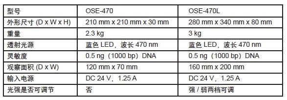 OSE-470/470L切膠儀/藍光透射儀此儀器還可應(yīng)用于其它激發(fā)波長在470-520 nm 的熒光觀測,如GFP標(biāo)記的蛋白、小型動植物。