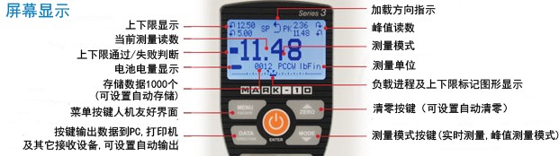 測量值實際顯示及峰值顯示 記錄第一峰值/第二峰值功能 3/8"方榫接口 高速7000Hz采樣頻率 1000個數(shù)據(jù)存儲帶統(tǒng)計功能輸出 USB,RS-232,Mitutoyo,及模擬輸出端口 斷裂識別/自動輸出/自動清零/自動存儲功能 密碼保護功能設置防止意外更改測量設置 上下限報警及通過/失敗判斷 5種測量單位切換 電池及交流適配器供電
