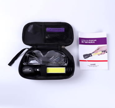 手電筒一把、充電電池一節(jié)、LUV-10防護(hù)眼鏡一副、充電線一根、布袋一個(gè)。