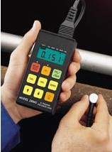 測量范圍:0.15~25.40mm,英制/公制可選擇, 分辨率:20.00mm以下時為0.001mm;20.00mm以上時為0.01mm 聲速范圍:1250~10000 m/s 測量模式:回波-回波模式、界面-回波模式、對單點測量每秒可讀4次、掃描模式每秒可讀16次 顯示: 4.5位數(shù)字液晶顯示屏(LCD), 背光可選 外殼:擠壓鋁制外殼,底蓋為鎳板鍍鋁,防止碰傷,環(huán)保封裝 重量:帶電池300克 尺寸:63.5x114.3x31.5mm 工作溫度:-30~50℃ 電源: 2節(jié)1.5V堿性電池或1.2V鎳鎘電池(AA), 堿性電池最多可用200小時,鎳鎘電池可用130小時