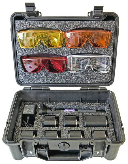 蘭寶 Astra Torch LED – 基礎(chǔ)套件包括: o 1 個(gè)燈體 o 1 個(gè)紫外燈頭(選擇1°或 5°) o 1 個(gè)鋰電池 o 1 個(gè)充電器 o 4 個(gè)防護(hù)眼鏡(紫外,紅色,橙色,黃色) o 1 個(gè)IP67專(zhuān)用工具箱