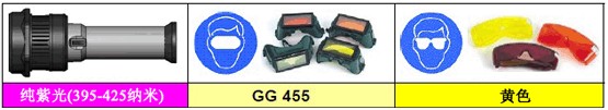 注意事項: ★勘查時必須佩帶GG495觀察眼罩 ★拍照必須加GG495濾色鏡 ★使用環(huán)境:盡量選用暗場環(huán)境