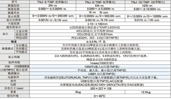 TNP-2/TNP-5/TNP-10瓶蓋扭力計/扭矩儀的技術(shù)參數(shù):