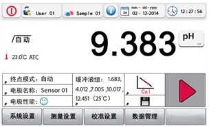 所有pH測(cè)量和校準(zhǔn)相關(guān)的重要信息都清晰地顯示在4.3寸的彩色大液晶屏上。一次簡(jiǎn)單觸摸即可進(jìn)行測(cè)量、校準(zhǔn),或者在不同測(cè)量模式切換,隨機(jī)可見(jiàn),如:電極狀態(tài)、當(dāng)前緩沖液組等?珊(jiǎn)單一次觸摸,即進(jìn)入對(duì)應(yīng)的樣品名,用戶名,時(shí)間日期等的設(shè)置。