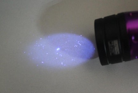 大多數(shù)的體液在高強度的紫外線作用下可以看到,是因為體液有自然熒光反射的特點。在復雜的刑偵現(xiàn)場,可以利用高強度的紫外線燈簡單及不復雜的使用方式尋找到有價值的痕跡。在高強度紫外線能量的激發(fā)下,這些體液的熒光反射是人的肉眼可以直接看到的。雖然,這種方式不能直接確認所找到的體液是哪一種,但是,通過使用高強度紫外線燈遠距離大面積的搜尋,可以直接幫助你確定在哪里有提取價值的痕跡物證,然后可以對 這些地方進行編號標出,從而為下一步的分析提供有價值的物證。